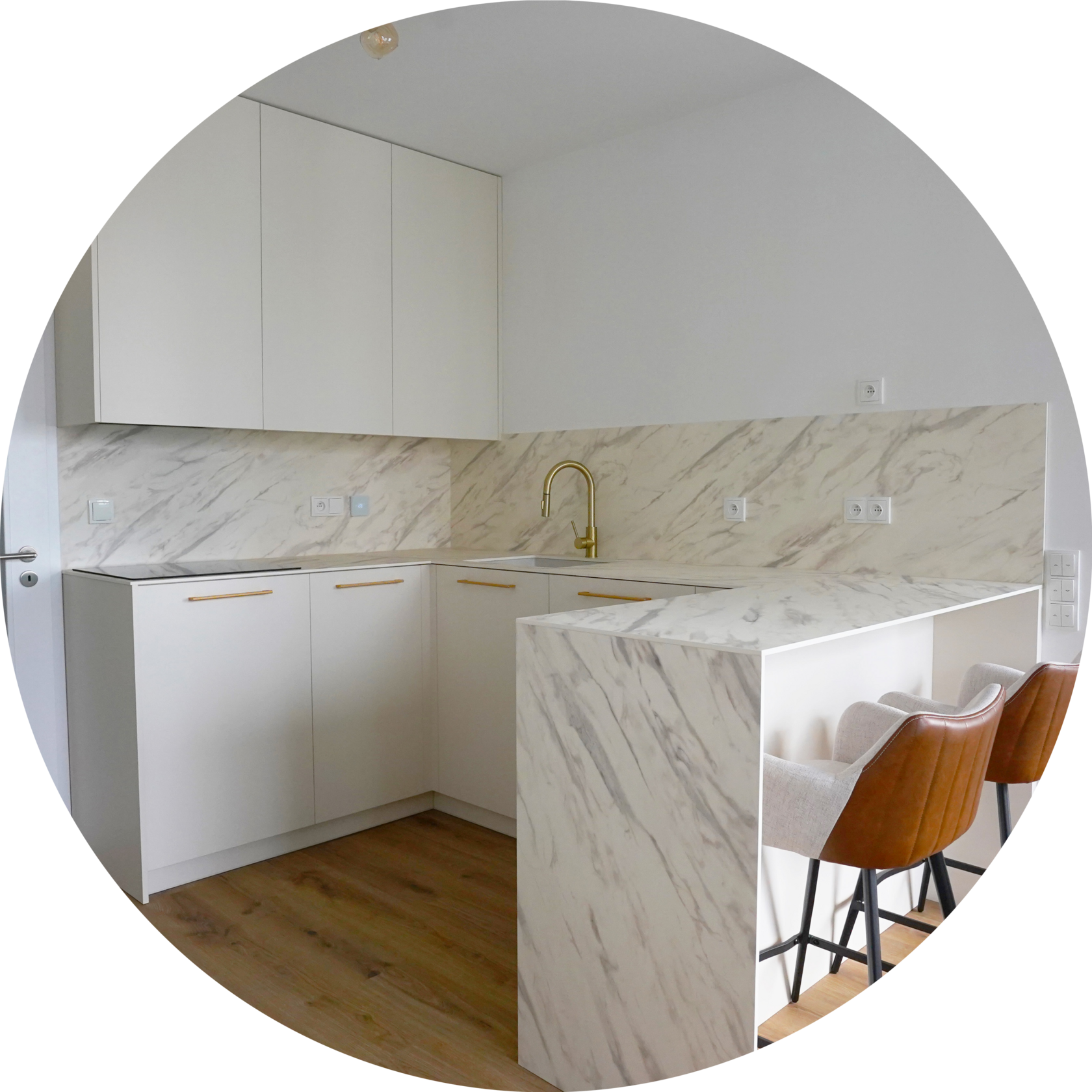 Výroba zahrnuje řezání materiálu, lepení hran, a montáž korpusů a fasád v dílně, aby bylo možné ověřit, zda výsledek odpovídá požadavkům zákazníka